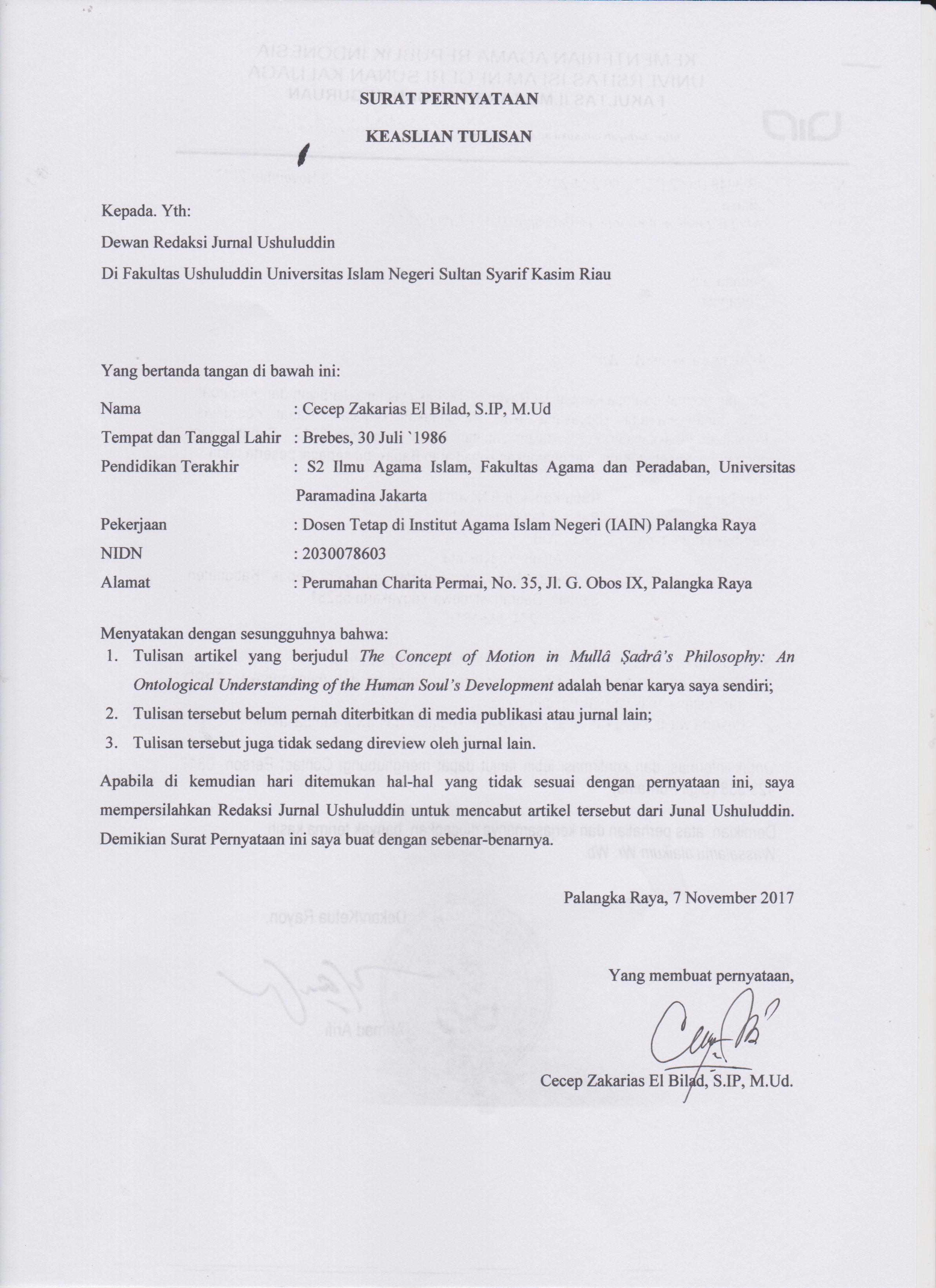 Artikel ini akan membahas konsep gerak dalam perspektif filsafat Mullâ Ṣadrâ dan aplikasinya dalam memahami perubahan-perubahan pada diri manusia, baik secara fisik maupun mental. Secara esensial, sesuatu itu tersusun atas substansi dan aksiden. Setiap sesuatu juga bergerak atau berubah. Di sini para filsuf berdebat tentang bagaimana sebuah gerak bisa terjadi. Apakah gerak terjadi hanya pada aksiden sesuatu tersebut seperti warna, bentuk, bobot, posisi, dan lain sebagainya, ataukah pada keduanya? Mullâ Ṣadrâ menyakini bahwa ketika sesuatu bergerak, gerak tersebut terjadi baik di tataran substansi maupun aksidennya. Bahkan, dari keduanya substansilah yang merupakan sumber. Gerak pada aksiden bersumber dari gerak substansi. Dalam filsafat Ṣadrâ, pembahasan tentang gerak terkait erat dengan kajian ontologi. Artikel ini akan mencoba menelusuri definisi dan latar ontologis gerak. Ini adalah riset kepustakaan. Data yang terkumpul akan dianalisis secara interpretatif untuk menjelaskan perubahan-perubahan gradual pada alam semesta khususnya pada diri manusia. Ditemukan bahwa jiwa merupakan substansi manusia yang berbeda dari substansi entitas-entitas lain di alam semesta. Jiwa adalah pijakan eksistensial bagi aksiden manusia, yakni tubuhnya, untuk menopang keberadaannya. Semua aktivitas tubuh digerakkan oleh jiwa dan semua perubahan yang dialaminya dari waktu ke waktu adalah efek dari dari perubahan-perubahan pada jiwa. Tanpa jiwa, tubuh hanyalah seonggok daging yang akan terurai