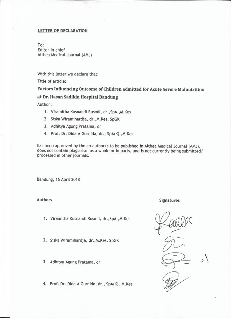 Background: Nutrition is still a global health issue, and improving nutrition is among the targets of the Sustainable Developmental Goals (SDGs). One of Indonesiaâs SDGs indicators is to reduce prevalence of malnutrition in children. Indonesia, as a developing country, implements a comprehensive malnutrition treatment program for children, including various aspects related to management of children with acute malnutrition. The purpose of this study was to identify factors associated with the outcome of children hospitalized with acute severe malnutrition. Methods: This cross sectional study enrolled 195 children with severe acute malnutrition, admitted to hospital from November 2016 to August 2017. Statistical Analysis was conducted using multivariable logistic regression to identify factors associated with the outcome. Adjusted Ratio with Confident Interval 95% and the value of P <0 .05 was considered significant. Result: A total of 195 children were diagnosed havings acute severe malnutrition. A history of complete immunization status (p value <0.001) was proved to be directly proportional to the recovery rate of patients with acute severe malnutrition. Provision of other types of antibiotic (p value 0.001) showed to increase recovery rates of patients with acute severe malnutrition. Several comorbid diseases reduced recovery rates such as pneumonia (Crude OR 0.619) tuberculosis (Crude OR 0.606) and HIV (p value 0.08).Conclusions: This study shows that although the provided treatments are appropriate with the standard treatment for severe malnutrition, they still encounter high levels of morbidity. Further large-scale studies should be conducted to develop better interventions and management of acute severe malnutrition, in order to achieve better outcome.Â