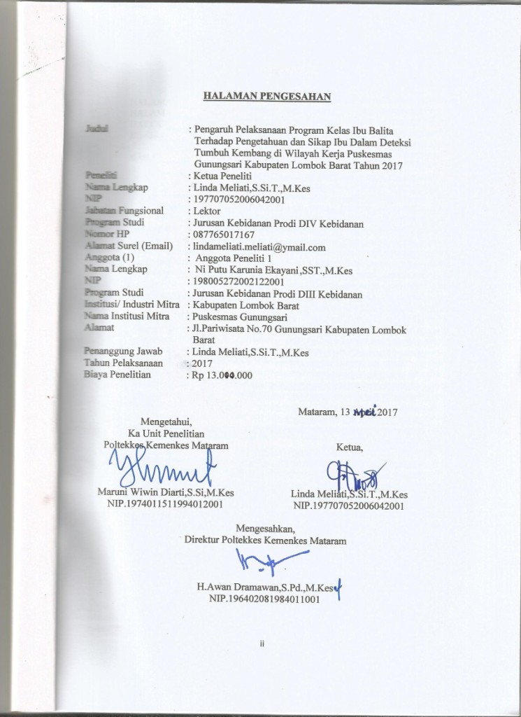This research objective is to analyze the effect of children under five year mother class program to mother’s knowledge and attitude to detect the children growth and development. The research is dummy experiment with nonrandomized pretest posttest design. The research is applied to mothers having children age 0 – 59 months in Puskesmas (Community Health Service Center) Gunungsari work region as many as 30 persons. The result is there are improvement of average knowledge and attitude score after the class. Previous average score of the mothers knowledge is 0.33 point and attitude 1.8367 point. After one month of the class, average score of the mothers knowledge become 0.67 point and attitude 2.1334 point. Statistic test result that there is effect of children under five year mother class program in mother’s knowledge and attitude to detect the children growth and development. There is no effect of the class implementation to mothers knowledge and there is effect of the class implementation to mothers attitude after one month intervention.