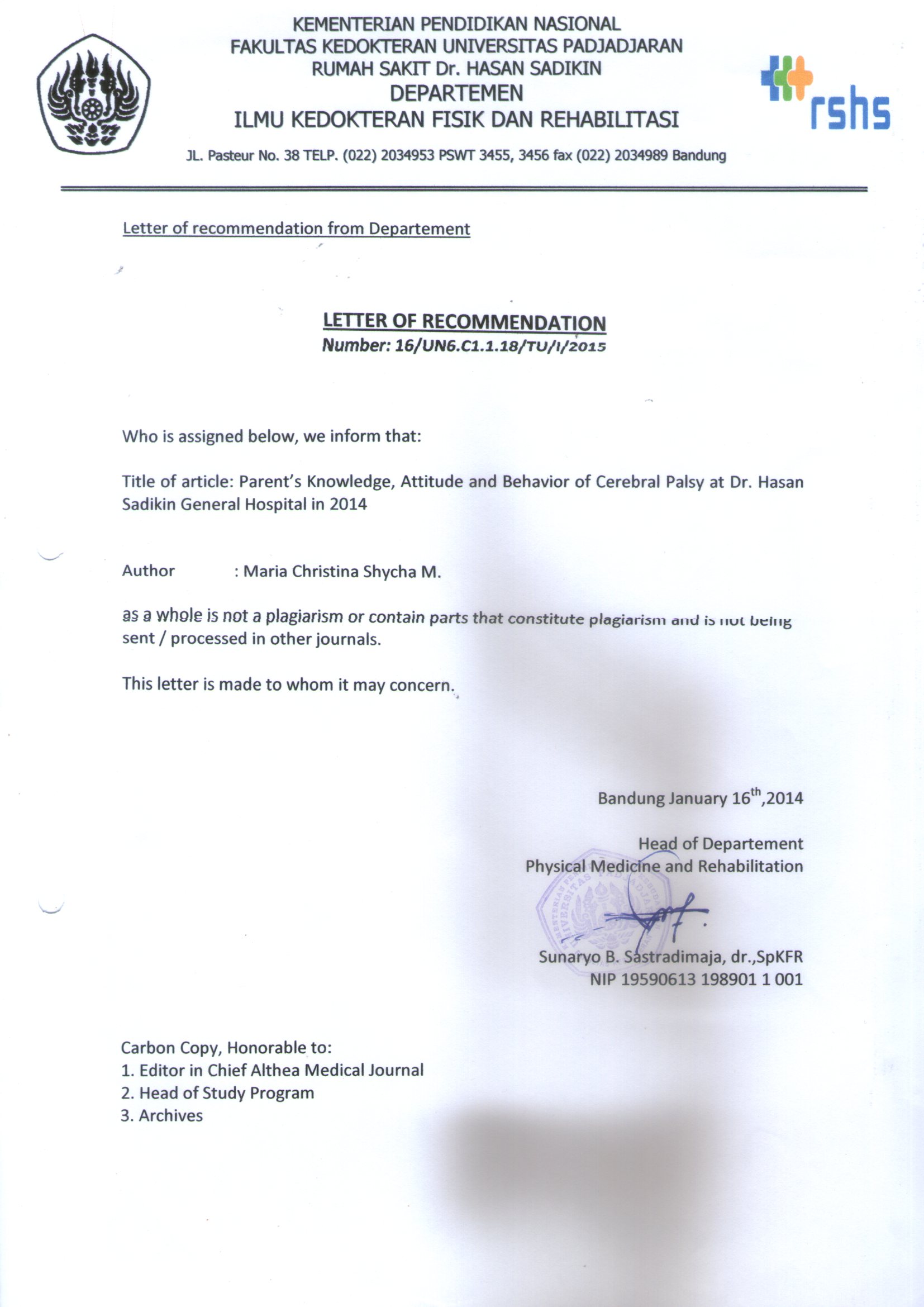 Gedung Rumah Sakit Pendidikan Unpad/Pamitran Unpad (Teaching Hospital Building) Faculty of Medicine Unpad, 3rd Floor Jl. Prof. Eyckman No. 38, Bandung, 40161, Indonesia