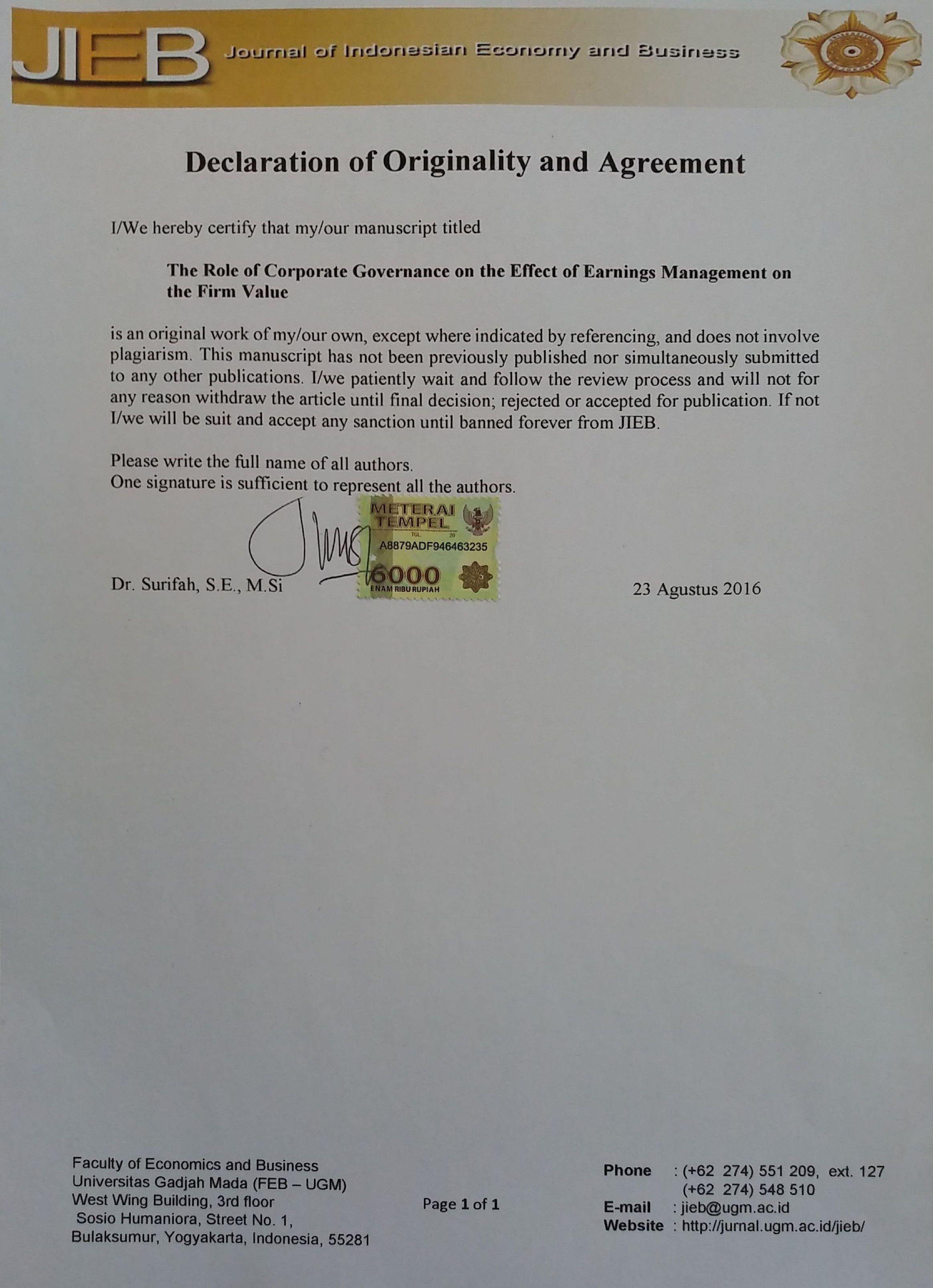 Faculty of Economics and Business, Universitas Gadjah Mada